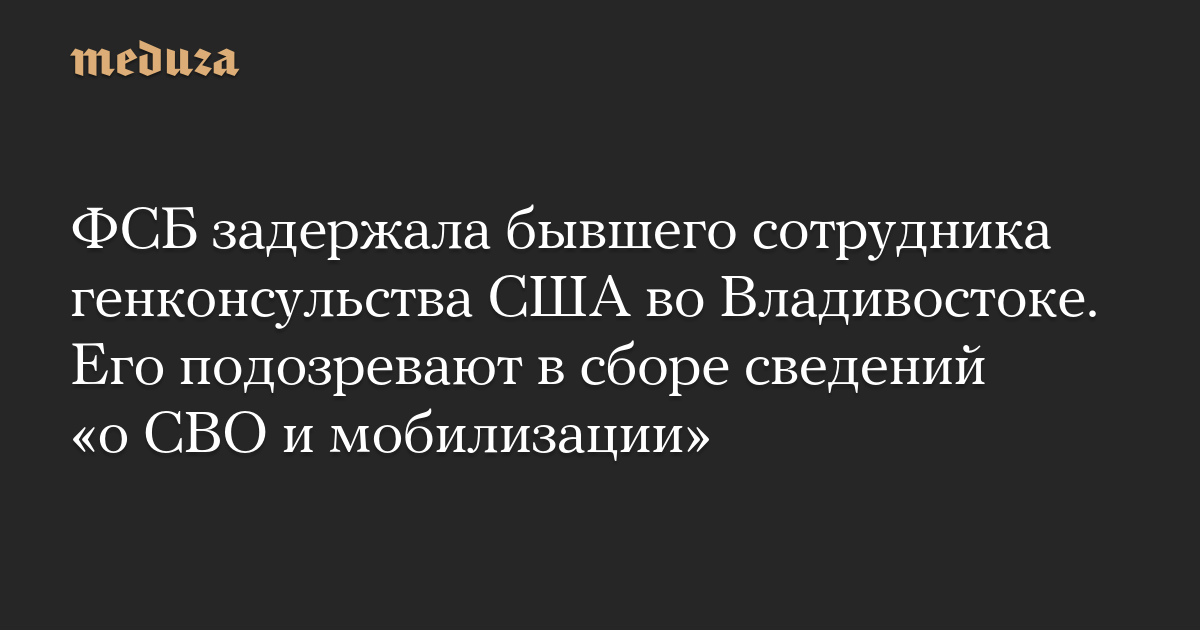 ФСБ задержала бывшего сотрудника генконсульства США во Владивостоке. Его подозревают в сборе сведений «о СВО и мобилизации»