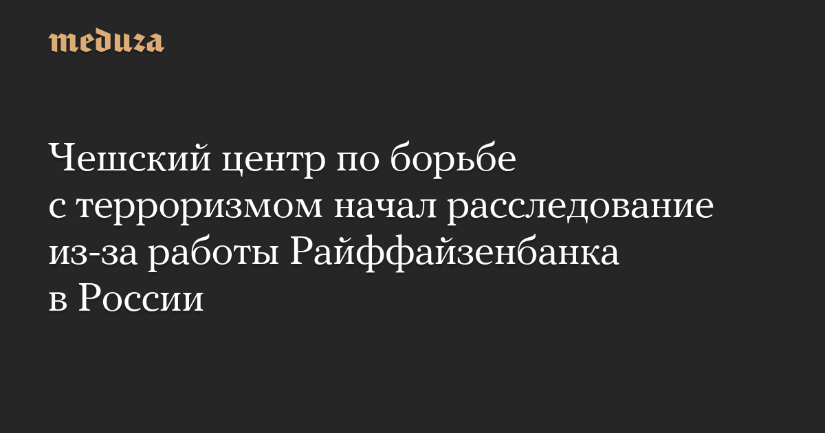 Национальный центр по борьбе с терроризмом Чехии начал расследование в отношении австрийской Raiffeisen Bank International из-за работы дочерней компании группы в России, сообщает Чешское телевидение.