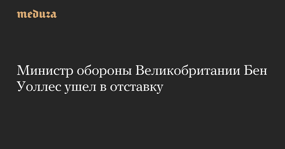 Министр обороны Великобритании Бен Уоллес объявил о своей отставке в письме на имя главы британского правительства Риши Сунака. Текст письма опубликован на сайте правительства (.pdf).