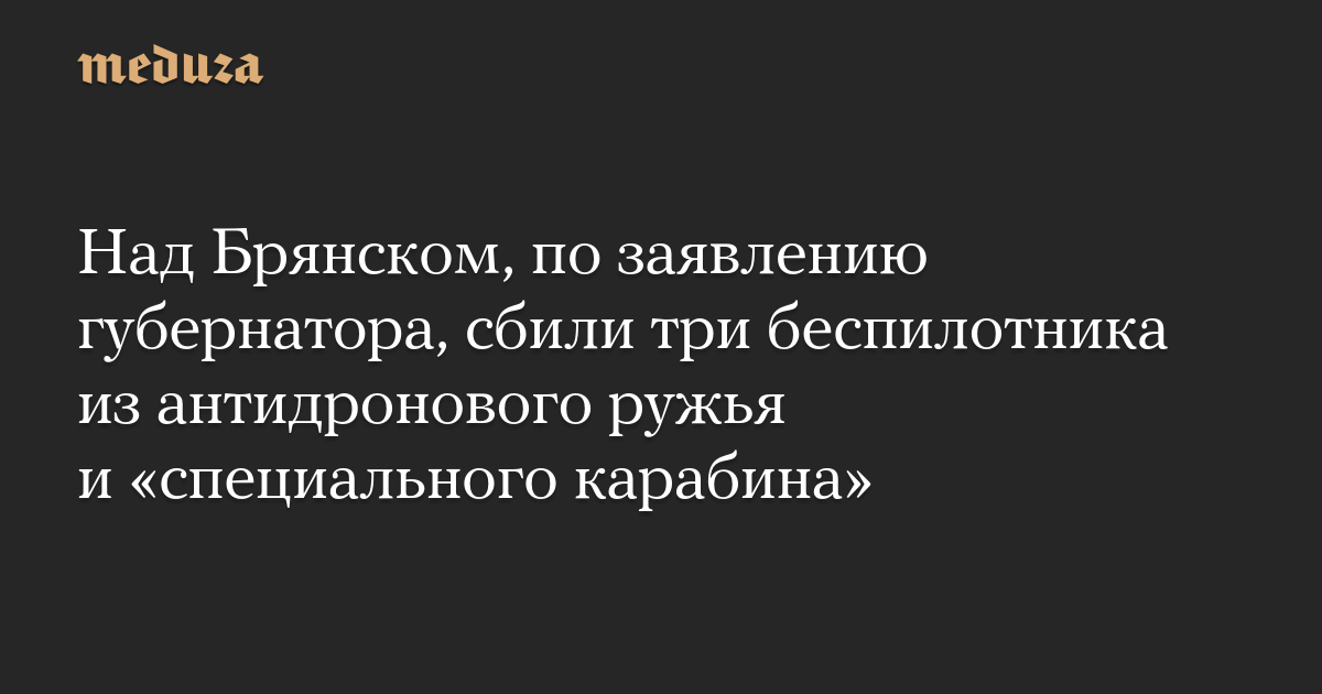Над Брянском, по заявлению губернатора, сбили три беспилотника из антидронового ружья и «специального карабина»