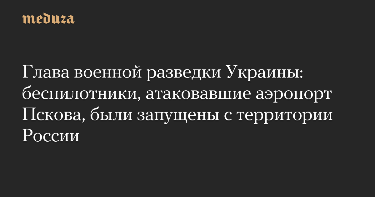 Руководитель главного управления разведки Минобороны Украины Кирилл Буданов заявил, что беспилотники, атаковавшие военно-гражданский аэропорт Пскова в ночь на 30 августа, были запущены с территории России. Об этом он сказал в комментарии проекту The War Zone.