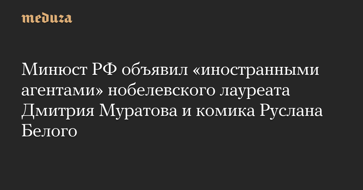 Минюст РФ объявил «иностранными агентами» нобелевского лауреата Дмитрия Муратова и комика Руслана Белого