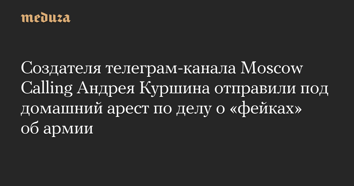 Черемушкинский суд Москвы отправил создателя телеграм-канала Moscow Calling Андрея Куршина под домашний арест по делу о распространении «фейков» про российскую армию по мотивам политической ненависти (пункт «д» части 2 статьи 207.3 УК), сообщает «Медиазона».