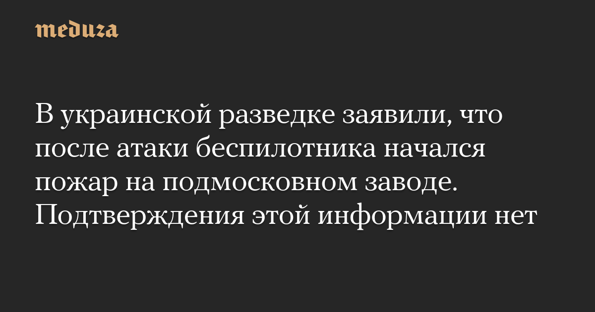 В украинской разведке заявили, что после атаки беспилотника начался пожар на подмосковном заводе. Подтверждения этой информации нет