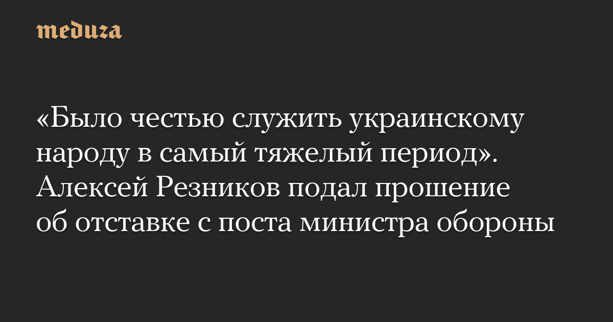 «Было честью служить украинскому народу в самый тяжелый период». Алексей Резников подал прошение об отставке с поста министра обороны