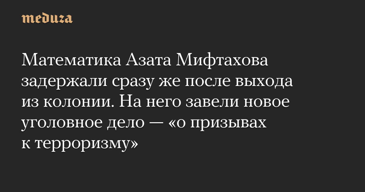 Математика Азата Мифтахова задержали сразу же после выхода из колонии. На него завели новое уголовное дело — «о призывах к терроризму»
