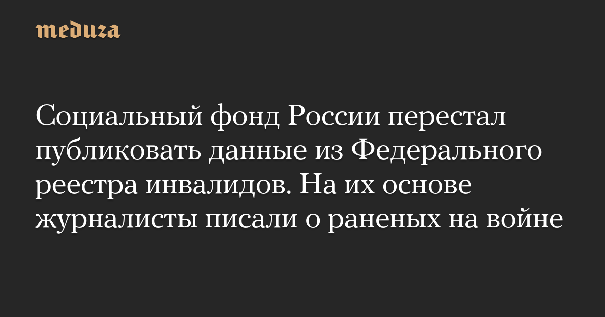 Социальный фонд России перестал публиковать данные из Федерального реестра инвалидов. На их основе журналисты писали о раненых на войне