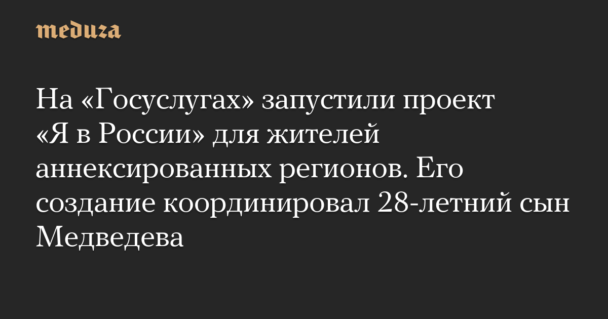 На «Госуслугах» запустили проект «Я в России» для жителей аннексированных регионов. Его создание координировал 28-летний сын Медведева