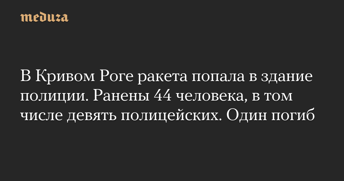 В Кривом Роге ракета попала в здание полиции. Ранены 44 человека, в том числе девять полицейских. Один погиб