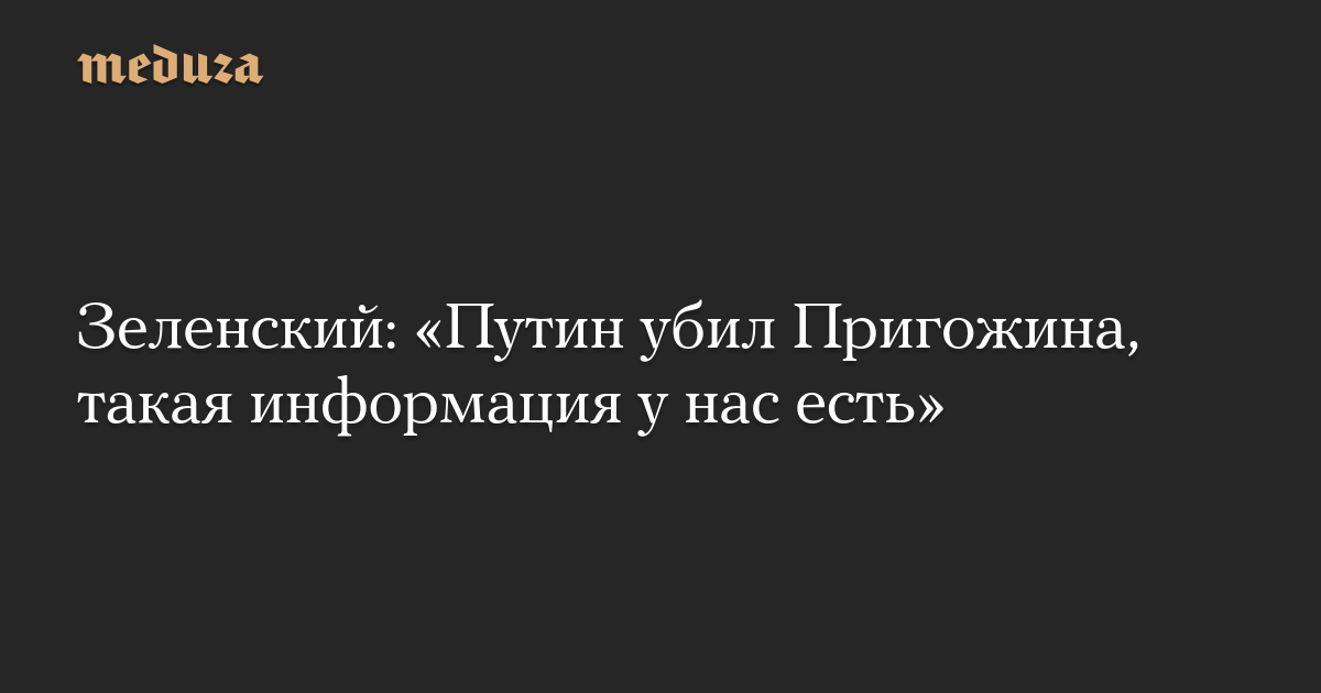 Зеленский: «Путин убил Пригожина, такая информация у нас есть»