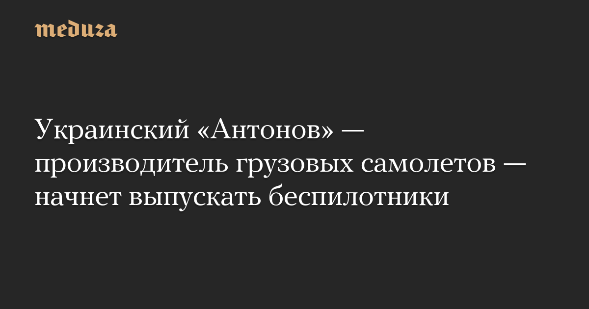 Украинское государственное предприятие «Антонов», специализирующееся на разработке и производстве грузовых самолетов серии «Ан», начнет производить беспилотники, сообщает Reuters со ссылкой на презентацию «Укроборонпрома».