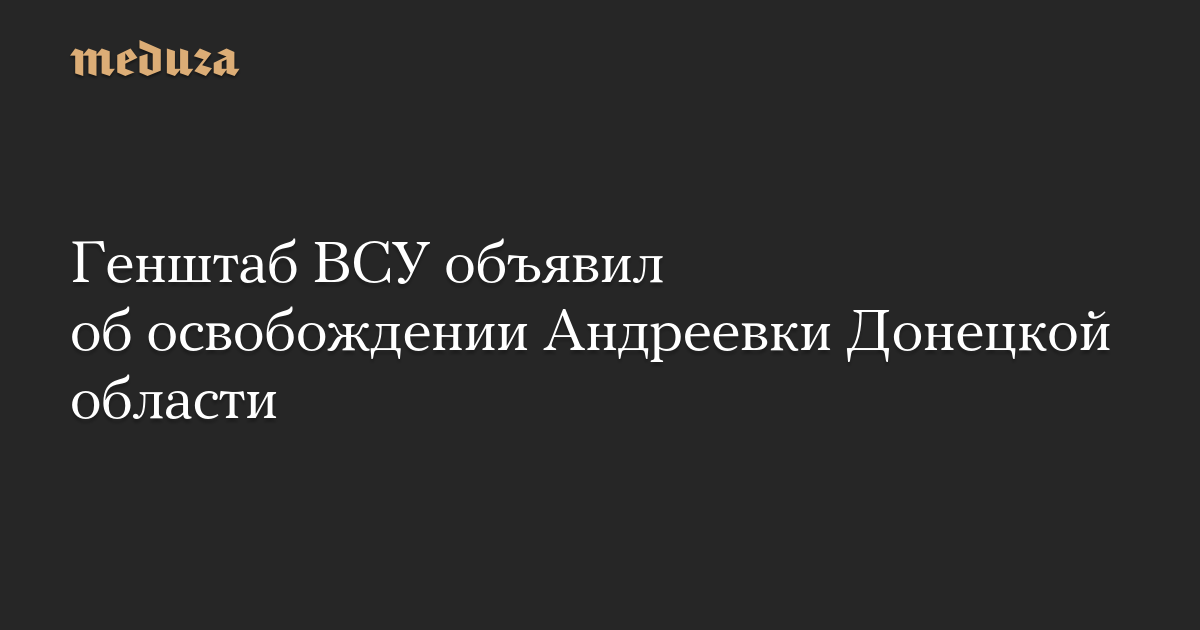 Генштаб ВСУ объявил об освобождении Андреевки Донецкой области