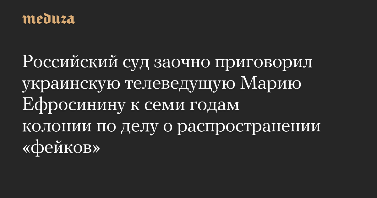 Басманный районный суд Москвы заочно приговорил украинскую телеведущую Марию Ефросинину к семи годам колонии, признав ее виновной в распространении «фейков» про российскую армию «по мотивам политической ненависти».