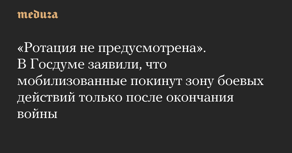 «Ротация не предусмотрена». В Госдуме заявили, что мобилизованные покинут зону боевых действий только после окончания войны
