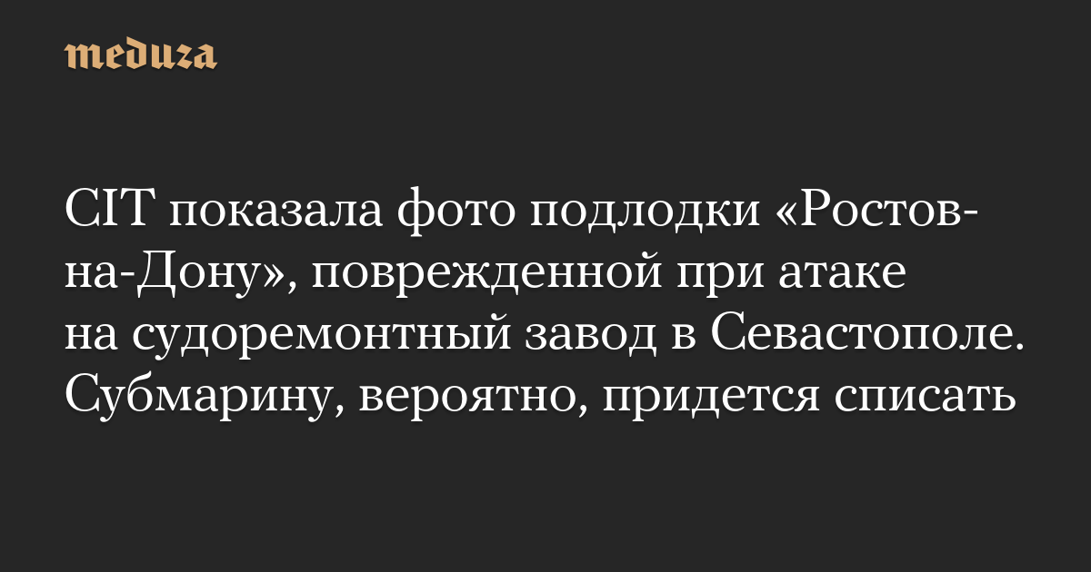 CIT показала фото подлодки «Ростов-на-Дону», поврежденной при атаке на судоремонтный завод в Севастополе. Субмарину, вероятно, придется списать