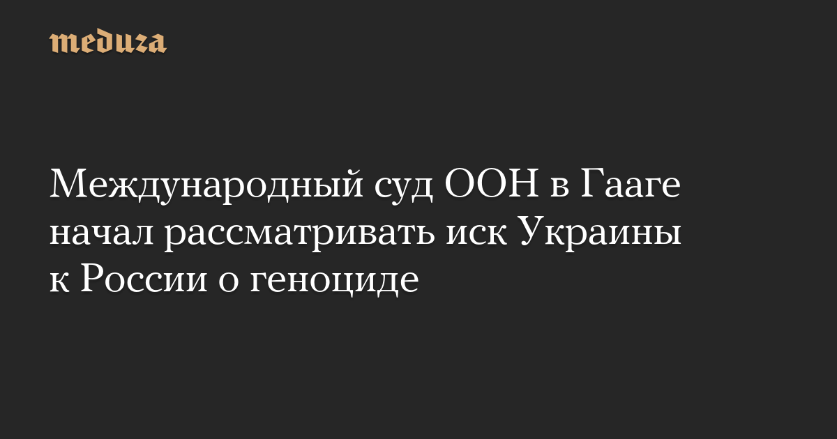 Международный суд ООН в Гааге приступил к рассмотрению иска Украины к России. В исковом заявлении, поданном вскоре после начала полномасштабного вторжения войск РФ, Украина просит суд привлечь Россию к ответственности за искажения понятия «геноцид» для оправдания нападения. Украина указывает, что Конвенция ООН 1948 года о геноциде не допускает вторжения с целью его предотвращения.