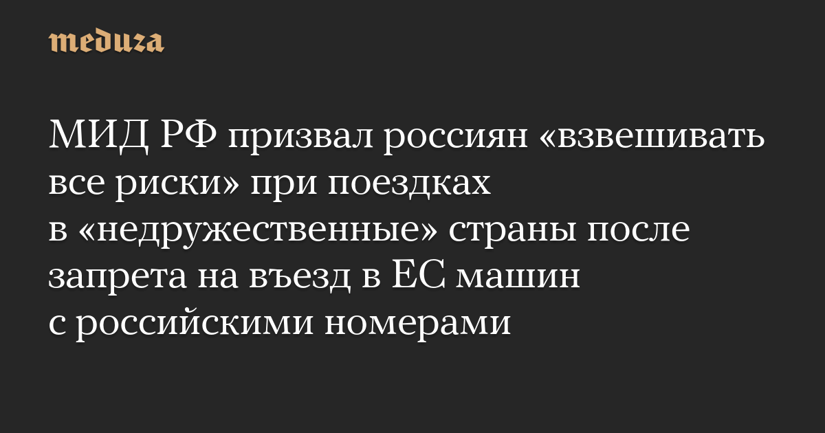 МИД РФ призвал россиян «взвешивать все риски» при поездках в «недружественные» страны после запрета на въезд в ЕС машин с российскими номерами