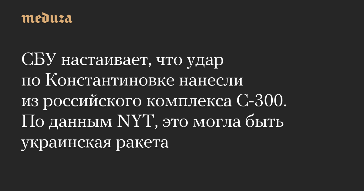 СБУ настаивает, что удар по Константиновке нанесли из российского комплекса С-300. По данным NYT, это могла быть украинская ракета