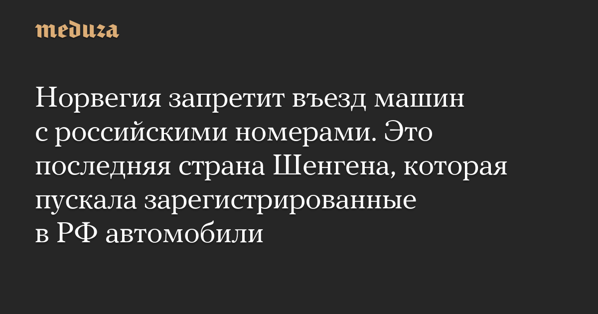 Норвегия пока единственная страна, входящая в Шенген и имеющая сухопутную границу с РФ, которая не ввела запрет на въезд автомобилей с российскими номерами.