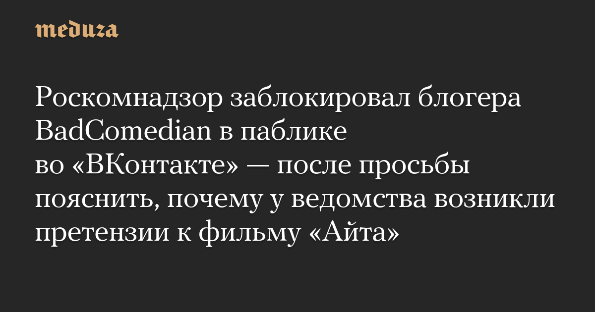 Роскомнадзор заблокировал блогера BadComedian в паблике во «ВКонтакте» — после просьбы пояснить, почему у ведомства возникли претензии к фильму «Айта»
