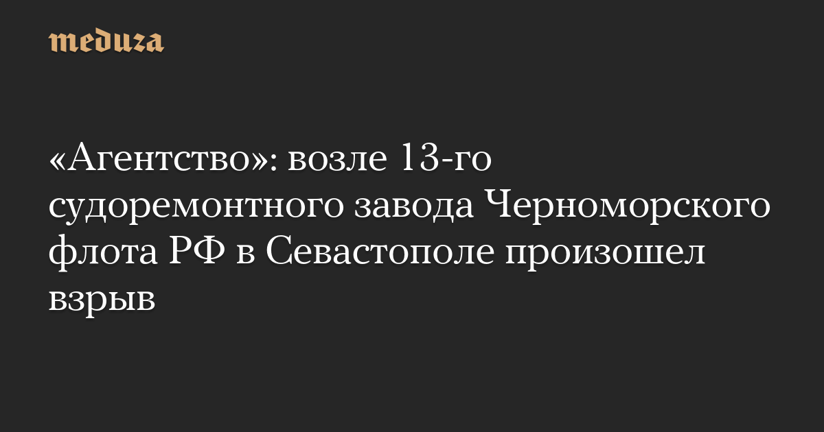 «Агентство»: возле 13-го судоремонтного завода Черноморского флота РФ в Севастополе произошел взрыв