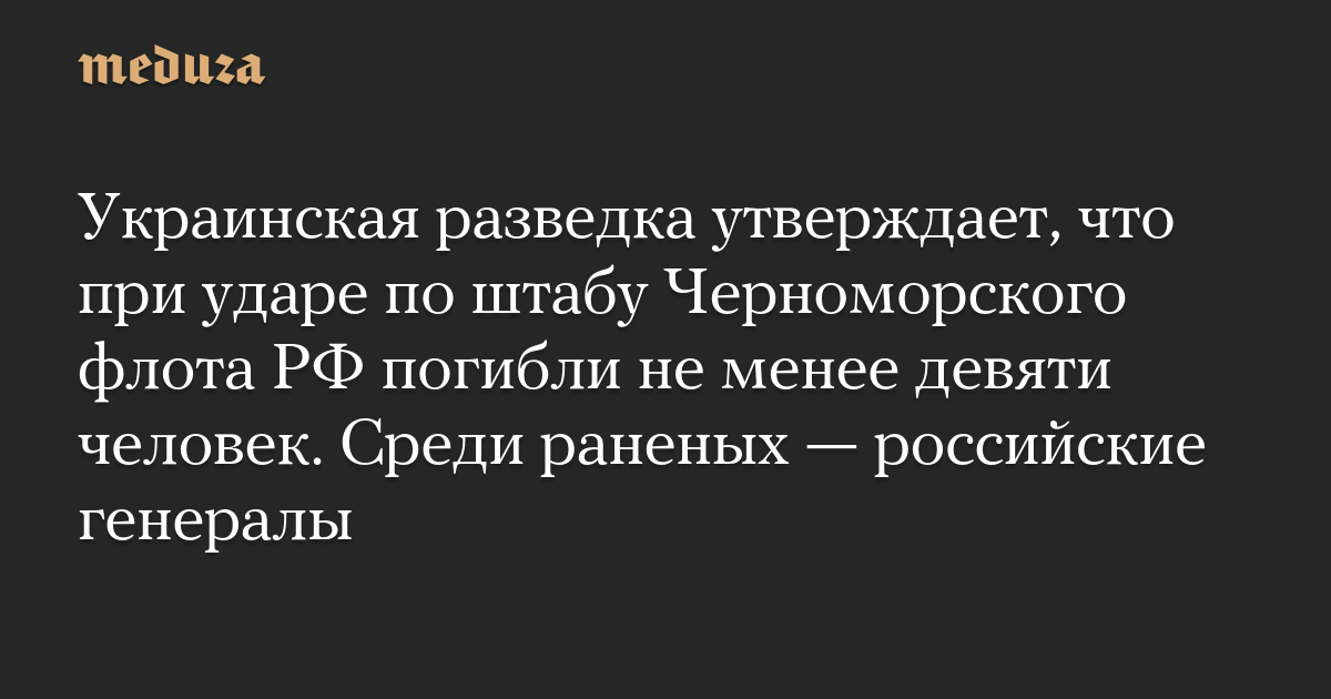 Украинская разведка утверждает, что при ударе по штабу Черноморского флота РФ погибли не менее девяти человек. Среди раненых — российские генералы