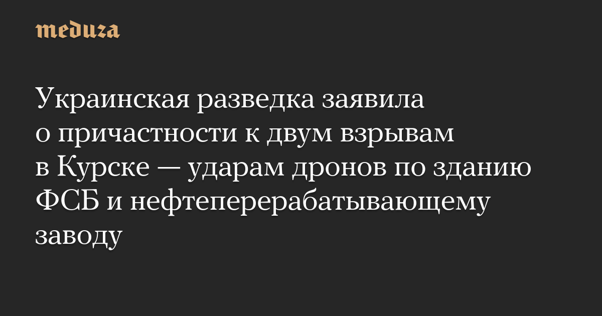 Украинская разведка заявила о причастности к двум взрывам в Курске — ударам дронов по зданию ФСБ и нефтеперерабатывающему заводу
