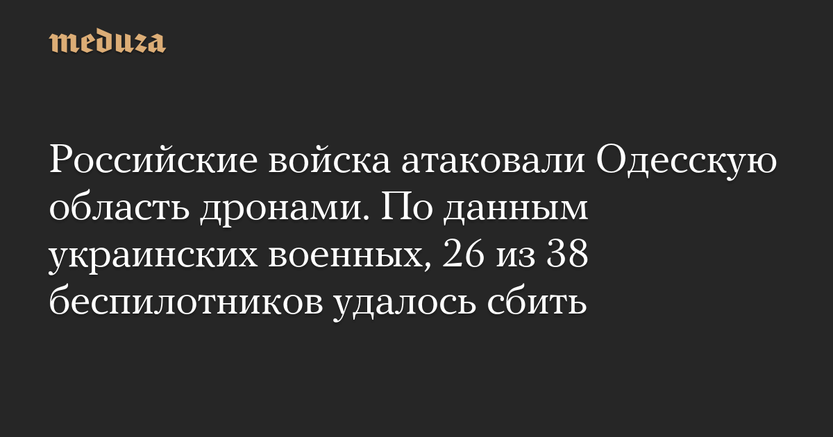 Российские войска атаковали Одесскую область дронами. По данным украинских военных, 26 из 38 беспилотников удалось сбить