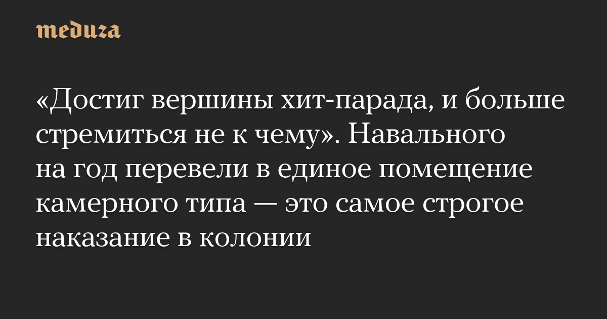 «Достиг вершины хит-парада, и больше стремиться не к чему». Навального на год перевели в единое помещение камерного типа — это самое строгое наказание в колонии