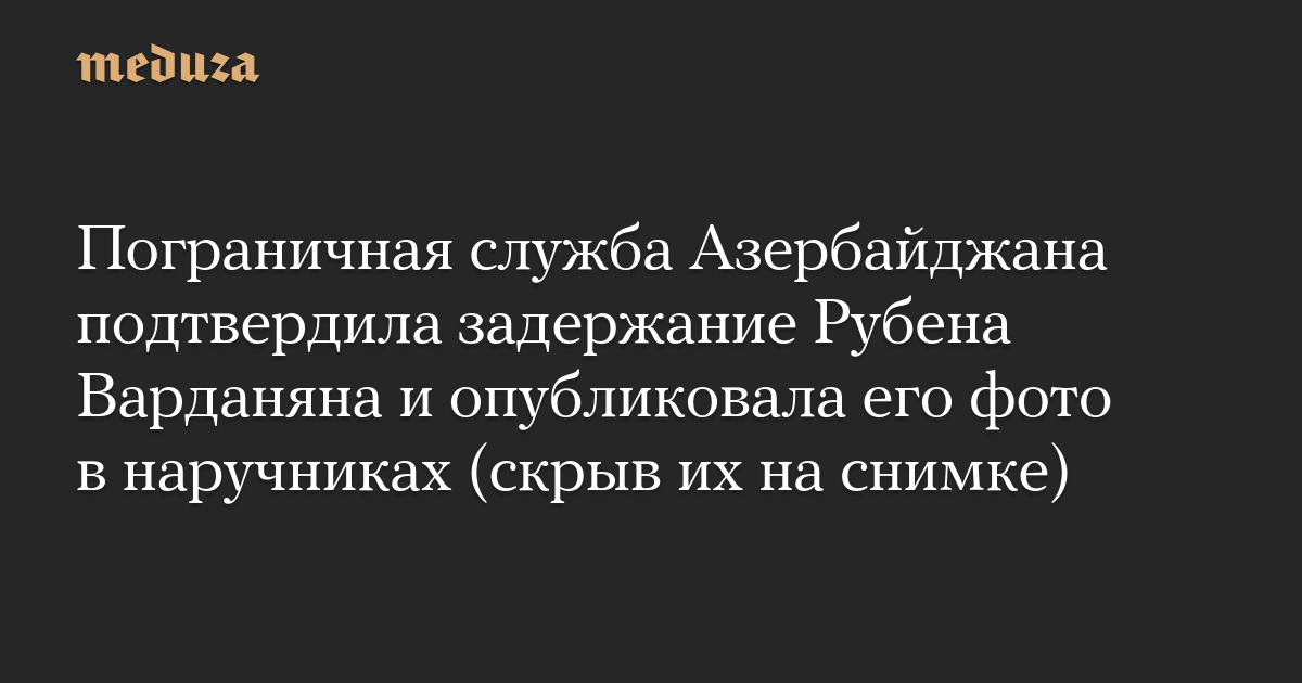 Пограничная служба Азербайджана подтвердила задержание Рубена Варданяна и опубликовала его фото в наручниках (скрыв их на снимке)