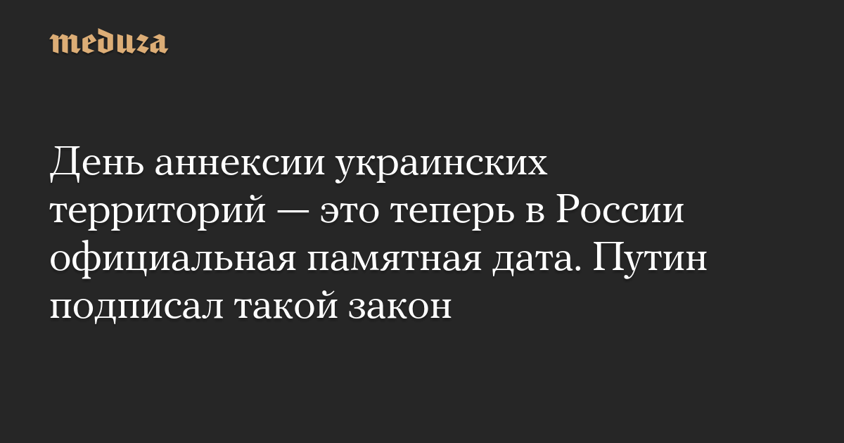 День аннексии украинских территорий — это теперь в России официальная памятная дата. Путин подписал такой закон
