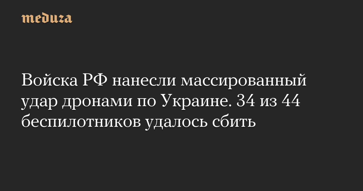 Войска РФ нанесли массированный удар дронами по Украине. 34 из 44 беспилотников удалось сбить