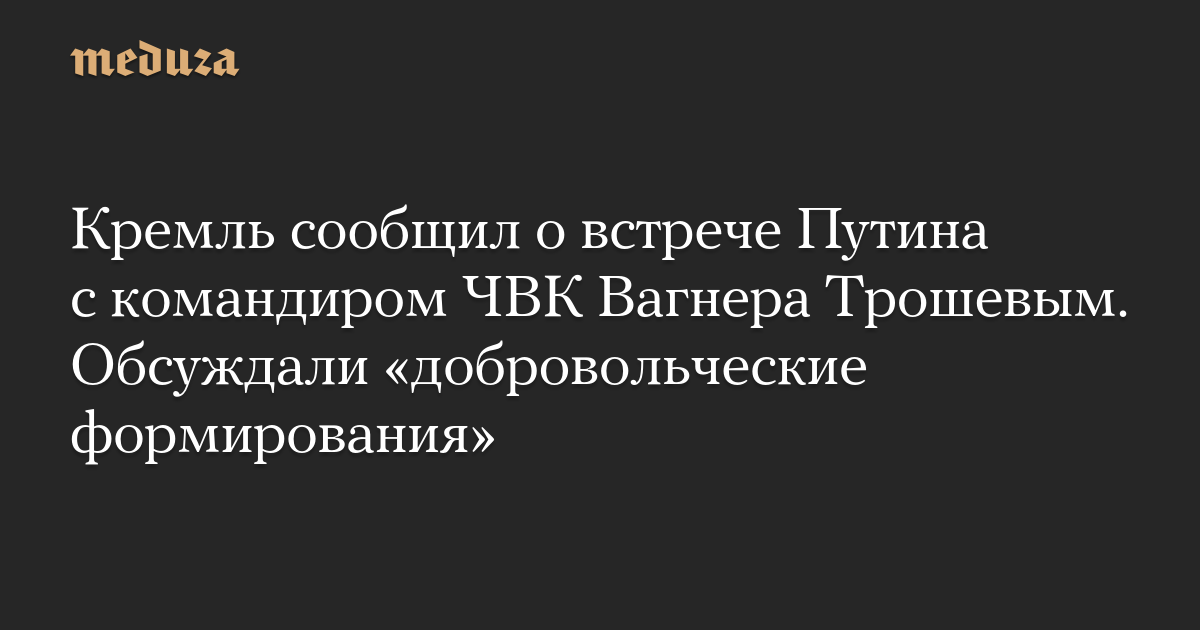Кремль сообщил о встрече Путина с командиром ЧВК Вагнера Трошевым. Обсуждали «добровольческие формирования»