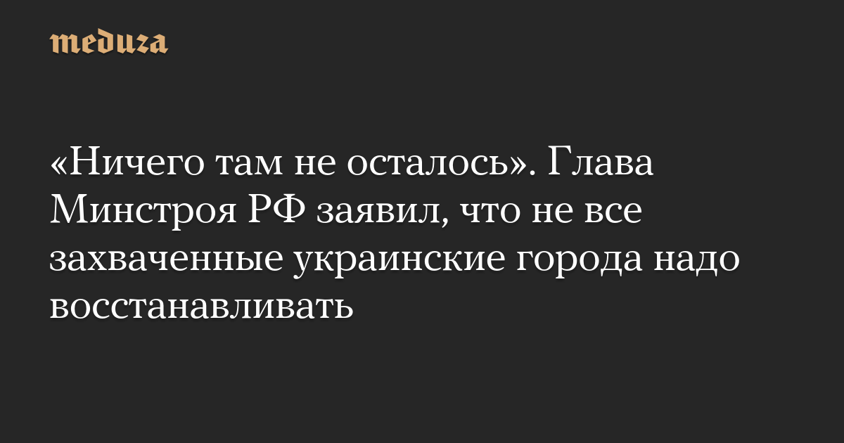 «Ничего там не осталось». Глава Минстроя РФ заявил, что не все захваченные украинские города надо восстанавливать