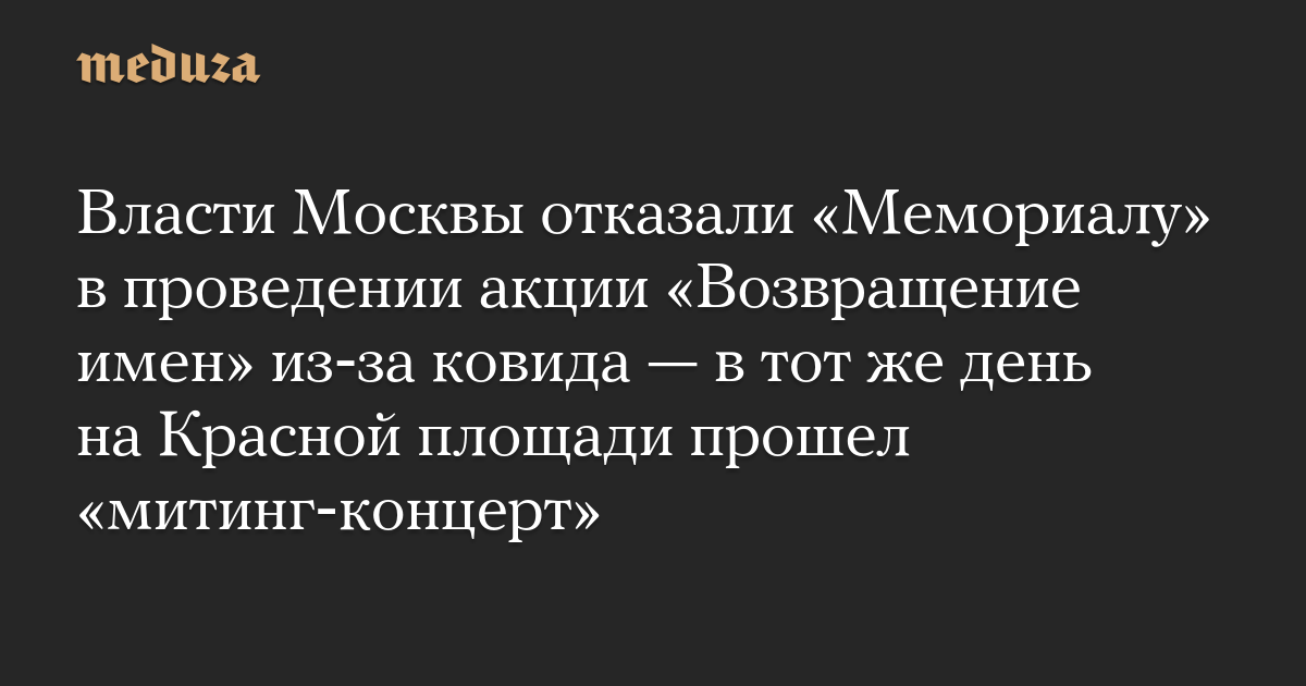 Власти Москвы отказали «Мемориалу» в проведении акции «Возвращение имен» из-за ковида — в тот же день на Красной площади прошел «митинг-концерт»