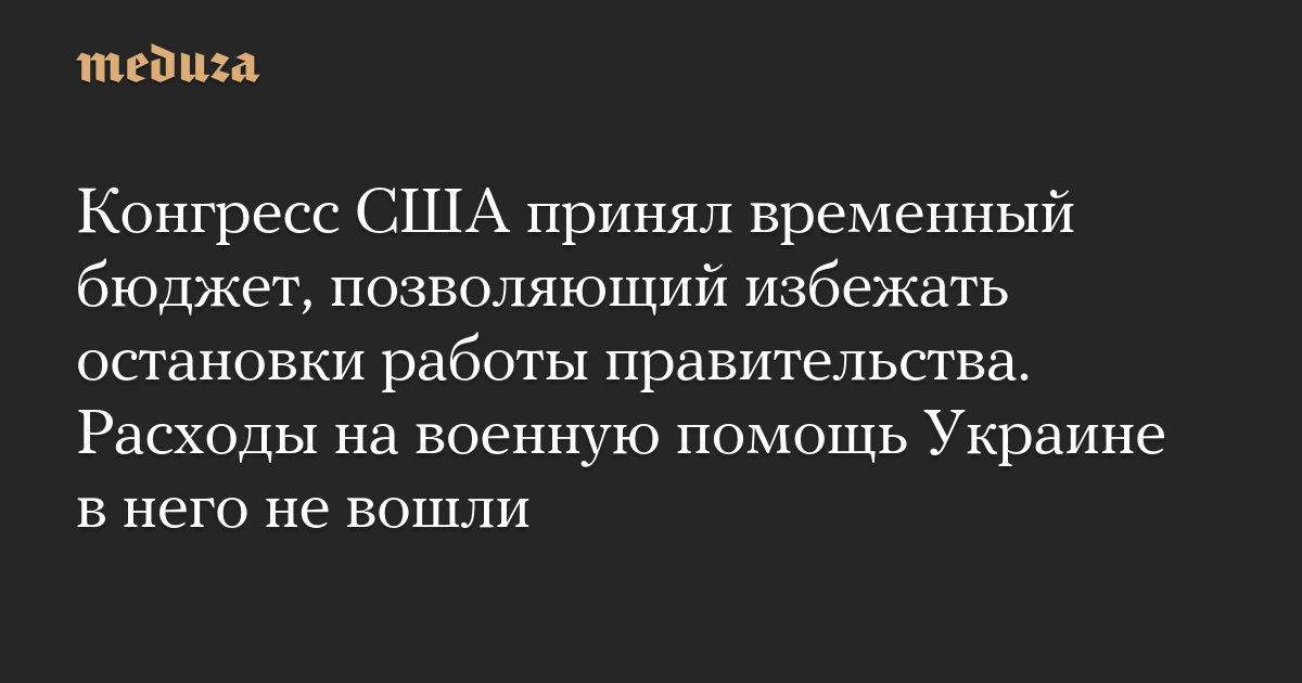 Конгресс США принял временный бюджет, позволяющий избежать остановки работы правительства. Расходы на военную помощь Украине в него не вошли