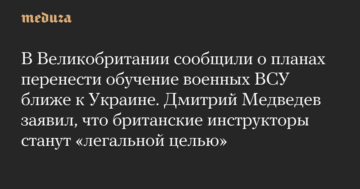 В Великобритании сообщили о планах перенести обучение военных ВСУ ближе к Украине. Дмитрий Медведев заявил, что британские инструкторы станут «легальной целью»