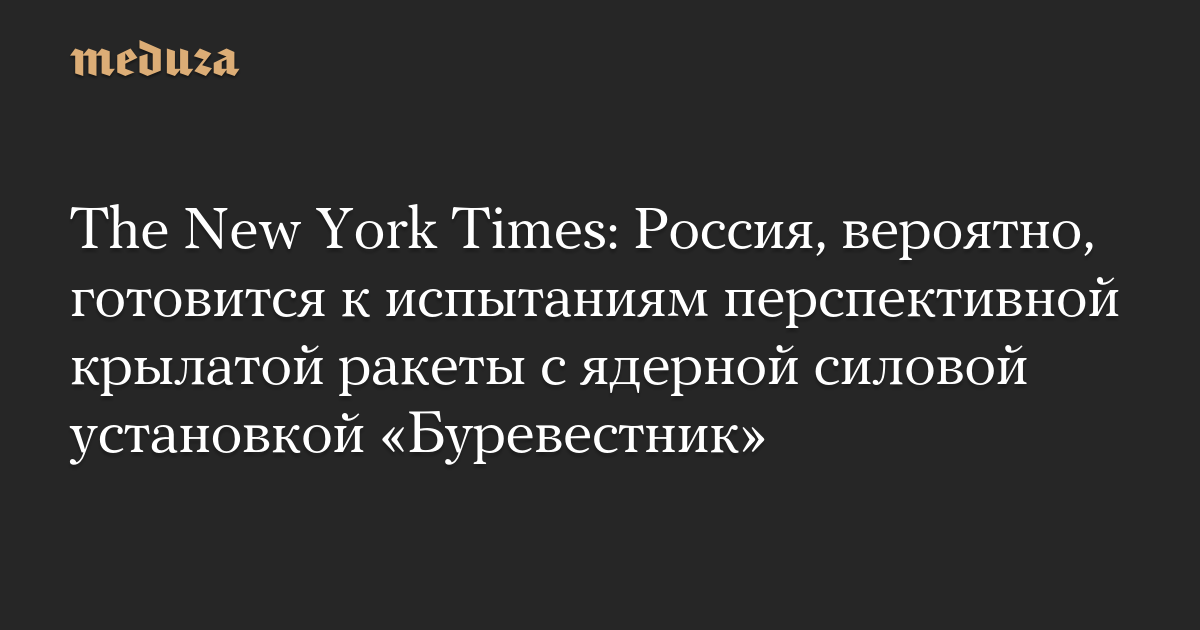 The New York Times: Россия, вероятно, готовится к испытаниям перспективной крылатой ракеты с ядерной силовой установкой «Буревестник»