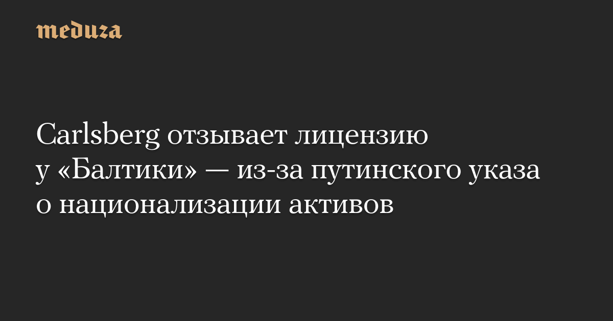 Carlsberg отзывает лицензию у «Балтики» — из-за путинского указа о национализации активов