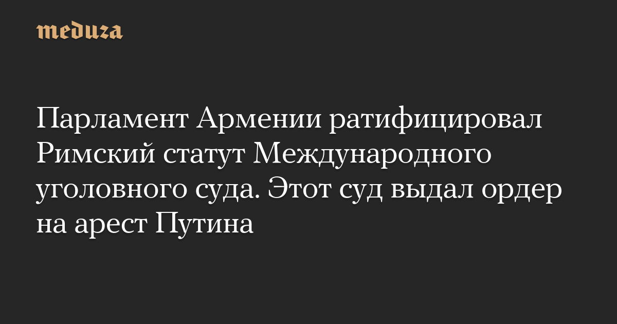 Парламент Армении ратифицировал Римский статут Международного уголовного суда. Этот суд выдал ордер на арест Путина