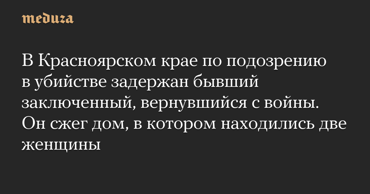 В Красноярском крае по подозрению в убийстве задержан бывший заключенный, вернувшийся с войны. Он сжег дом, в котором находились две женщины