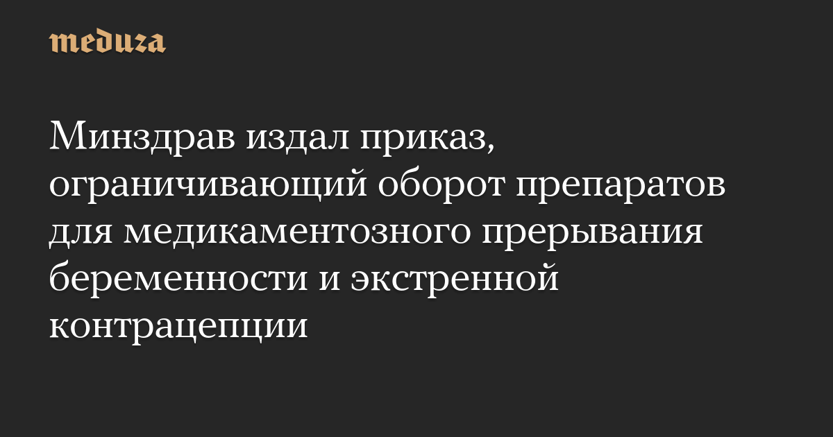 Министерство здравоохранения России издало приказ, ограничивающий оборот препаратов для медикаментозного прерывания беременности и экстренной контрацепции. Соответствующий документ опубликован на официальном интернет-портале правовой информации.