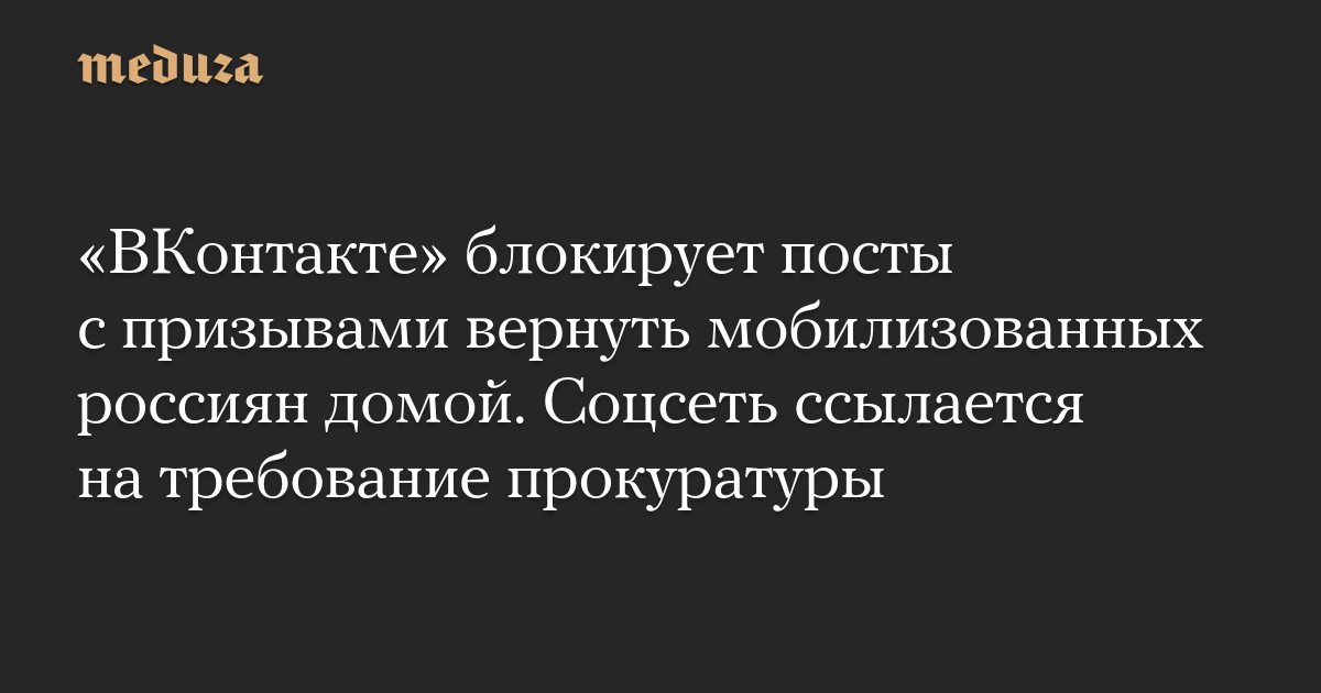 «ВКонтакте» блокирует посты с призывами вернуть мобилизованных россиян домой. Соцсеть ссылается на требование прокуратуры