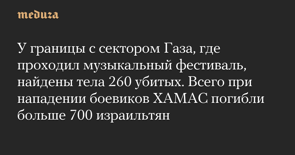 У границы с сектором Газа, где проходил музыкальный фестиваль, найдены тела 260 убитых. Всего при нападении боевиков ХАМАС погибли больше 700 израильтян