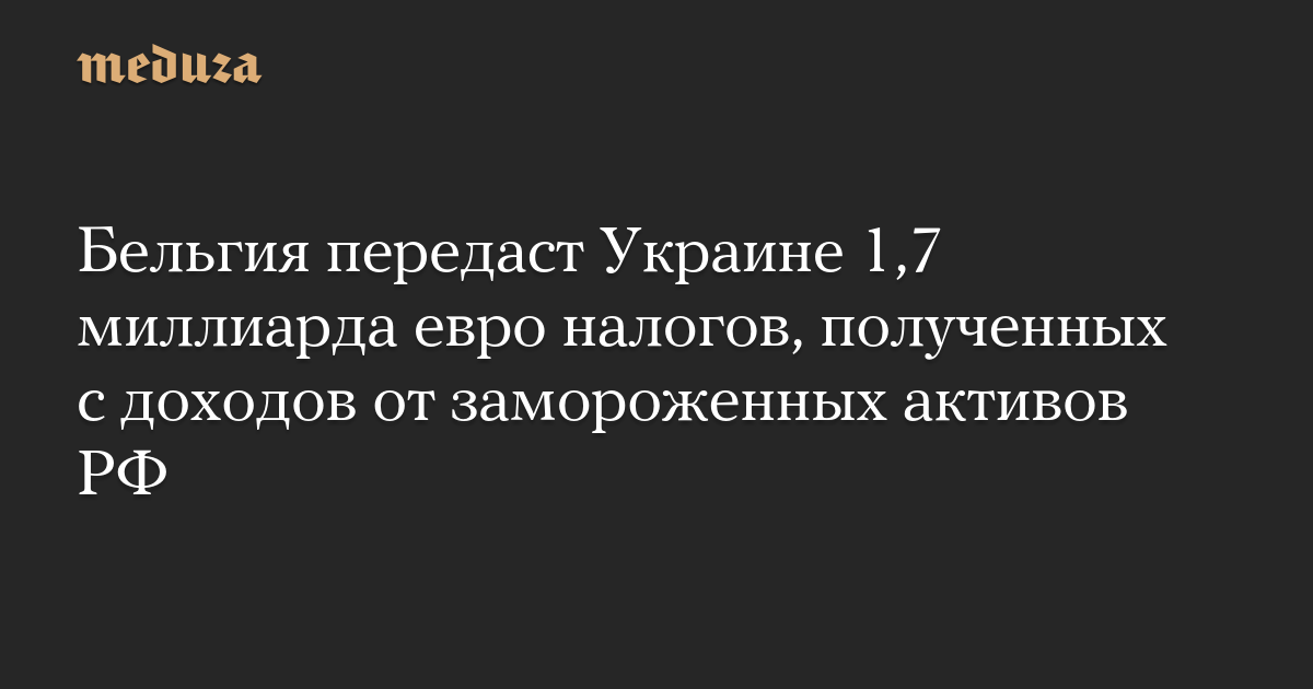 Бельгия передаст Украине 1,7 миллиарда евро налогов, полученных с доходов от замороженных активов РФ