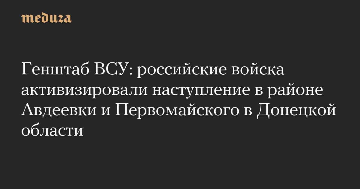 Генштаб ВСУ: российские войска активизировали наступление в районе Авдеевки и Первомайского в Донецкой области