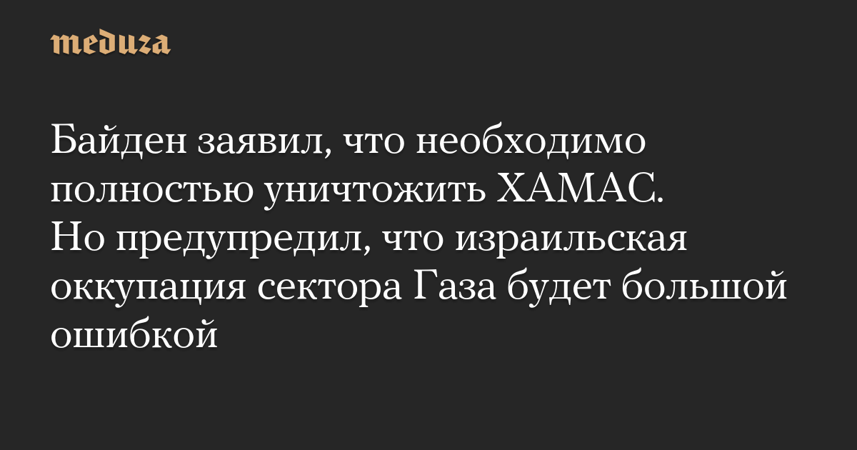 Байден заявил, что необходимо полностью уничтожить ХАМАС. Но предупредил, что израильская оккупация сектора Газа будет большой ошибкой