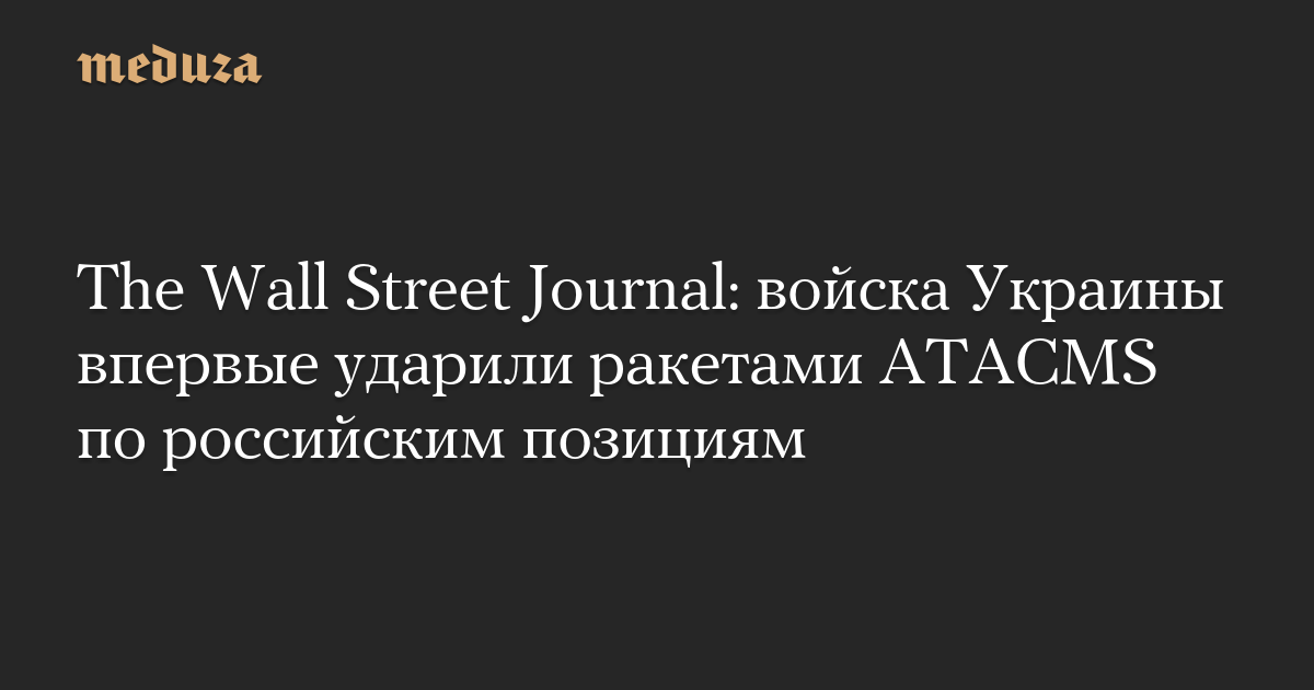 The Wall Street Journal: войска Украины впервые ударили ракетами ATACMS по российским позициям