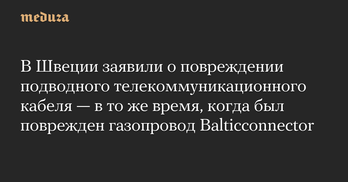 В Швеции заявили о повреждении подводного телекоммуникационного кабеля — в то же время, когда был поврежден газопровод Balticconnector
