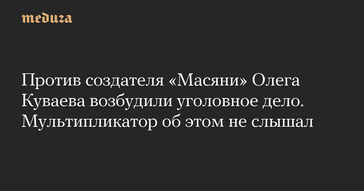 Следственный комитет России возбудил уголовное дело в отношении создателя мультфильма «Масяня» Олега Куваева, сообщил телеграм-канал «Mash на Мойке». Расследование ведут по статье «Публичные призывы к осуществлению деятельности, направленной против безопасности государства» (280.4 УК).